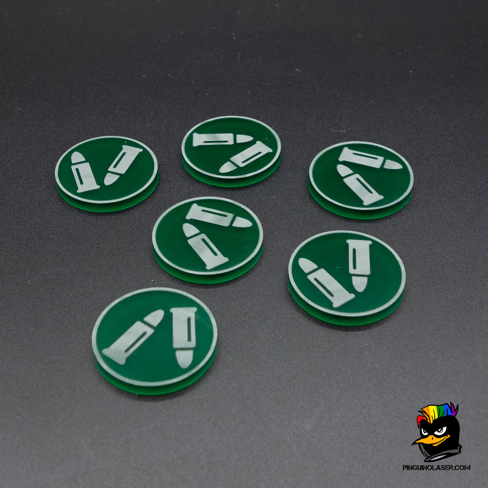 Marcadores de 25mm aprox. de diámetro en color Verde semitranslúcido.