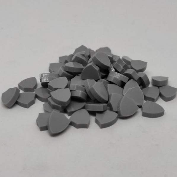 Counters made of acrylic in shield shape. Mark anything you need to remember in your board games: defenses, scores, resources, turns, etc.Ideal for your Print&Play games.