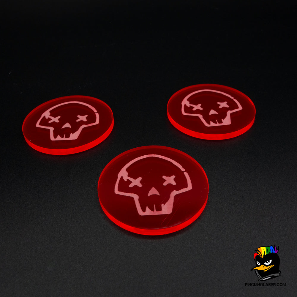 Este pack contiene 3 marcadores "Abatido" para miniaturas en peanas de 40mm de Punkapocalyptic.