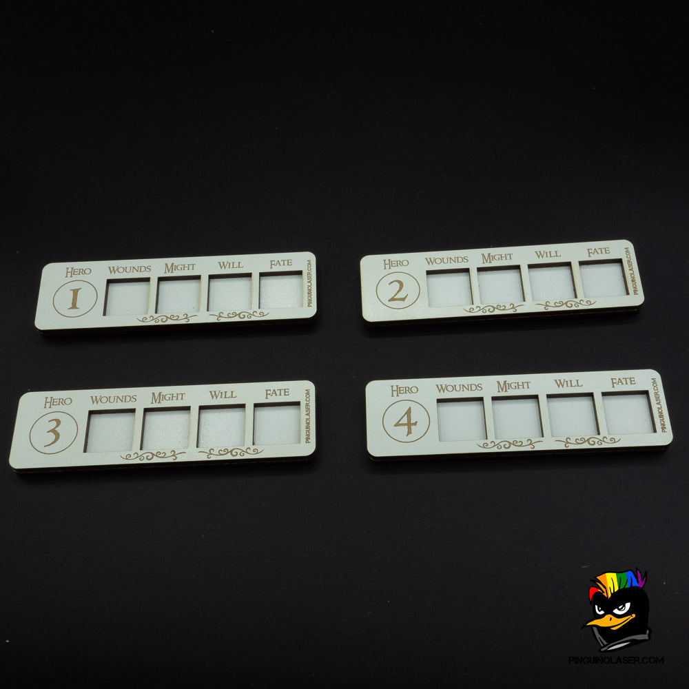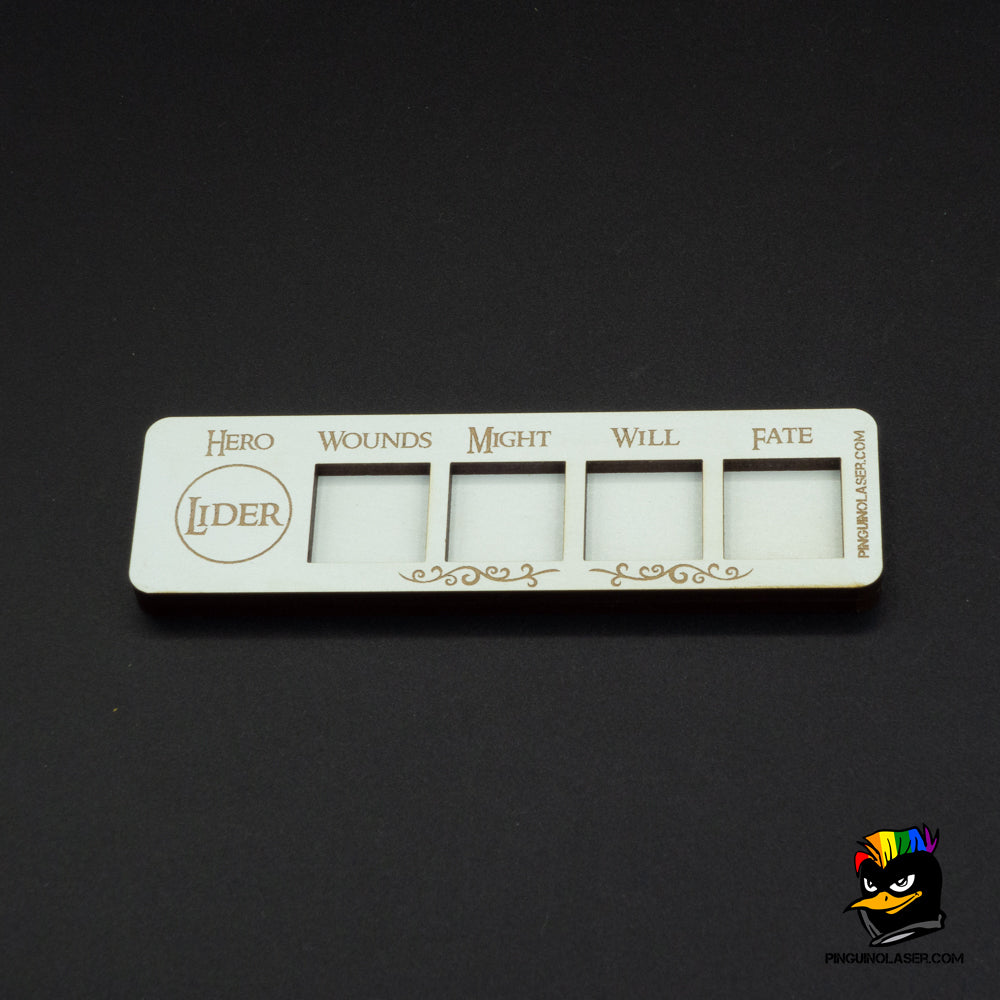 Panel for your Middle-earth characters where you can keep track of injuries, power, will and destiny.